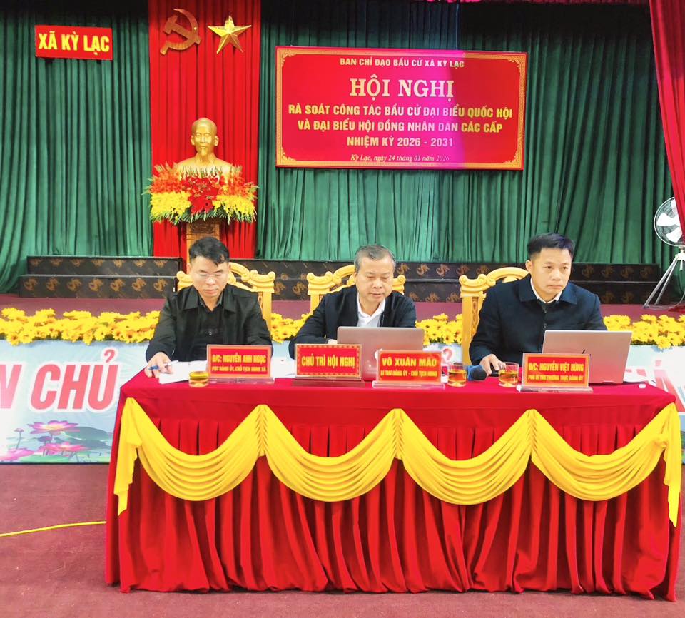Sáng ngày 24/01/2026, Ban chỉ đạo bầu cử xã Kỳ Lạc đã tổ chức hội nghị rà soát công tác bầu cử đại biểu Quốc hội khóa XVI và đại biểu Hội đồng nhân dân (HĐND) các cấp nhiệm kỳ 2026-2031. Đồng chí Võ Xuân Mão – Bí thư Đảng ủy, Chủ tịch HĐND xã dự và chủ trì hội nghị.
