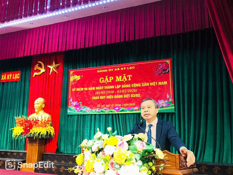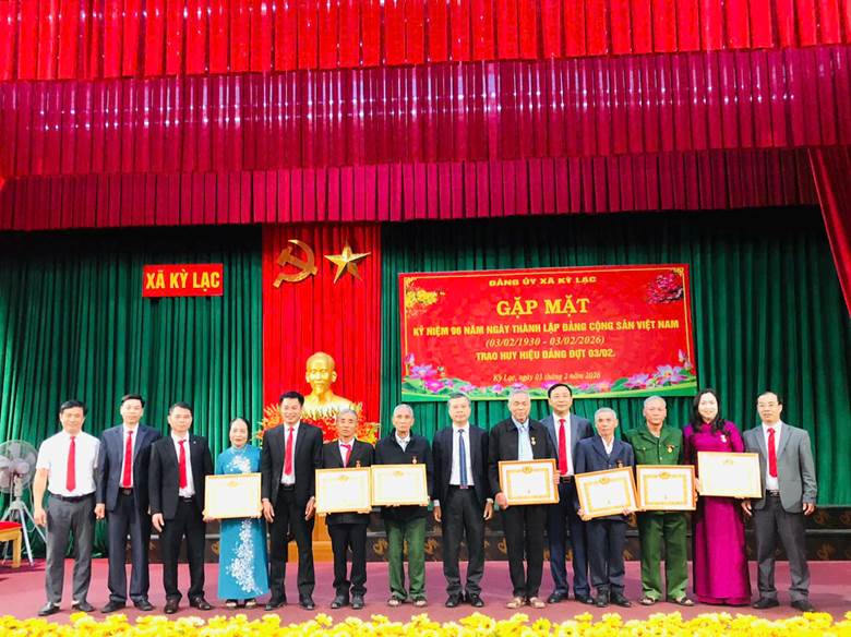 Nhân dịp này, Đảng ủy xã Kỳ Lạc đã trao tặng Huy hiệu Đảng 30, 40, 45 và 55 năm tuổi Đảng cho 8 đồng chí đảng viên, ghi nhận quá trình rèn luyện, cống hiến bền bỉ, liên tục của các đồng chí đối với sự nghiệp xây dựng và bảo vệ Tổ quốc.