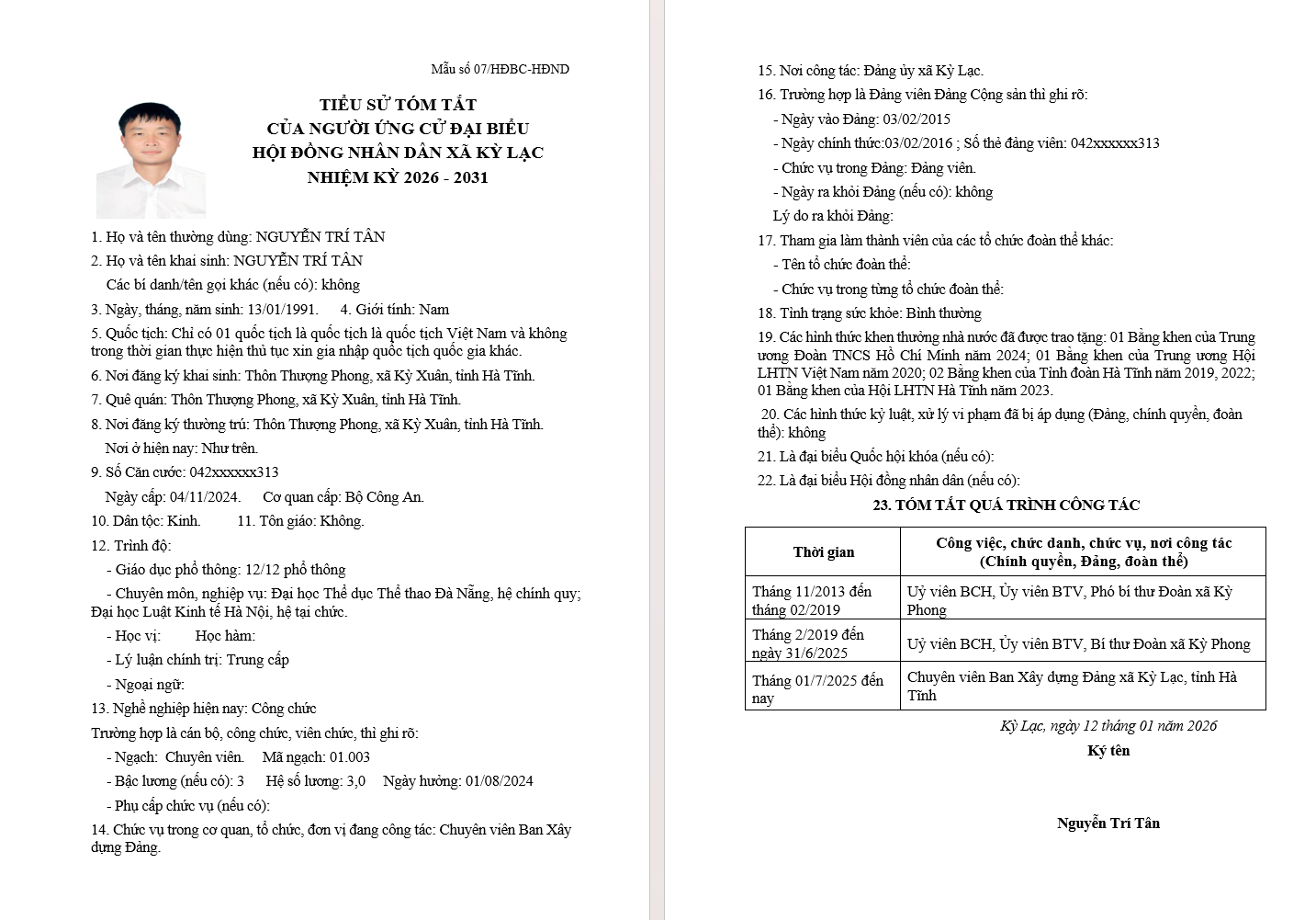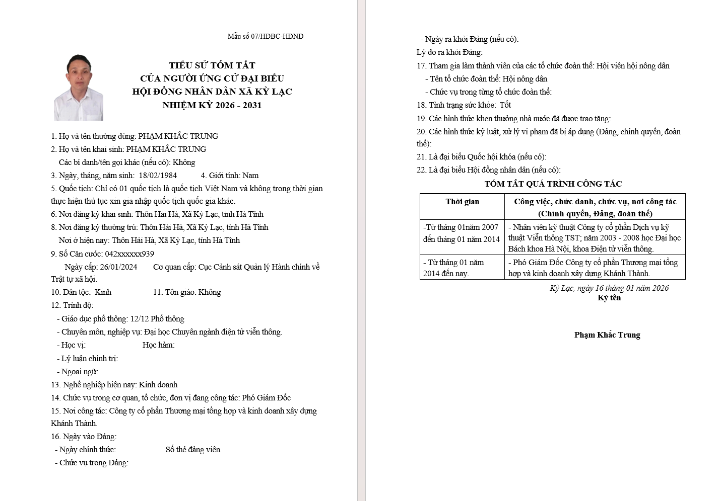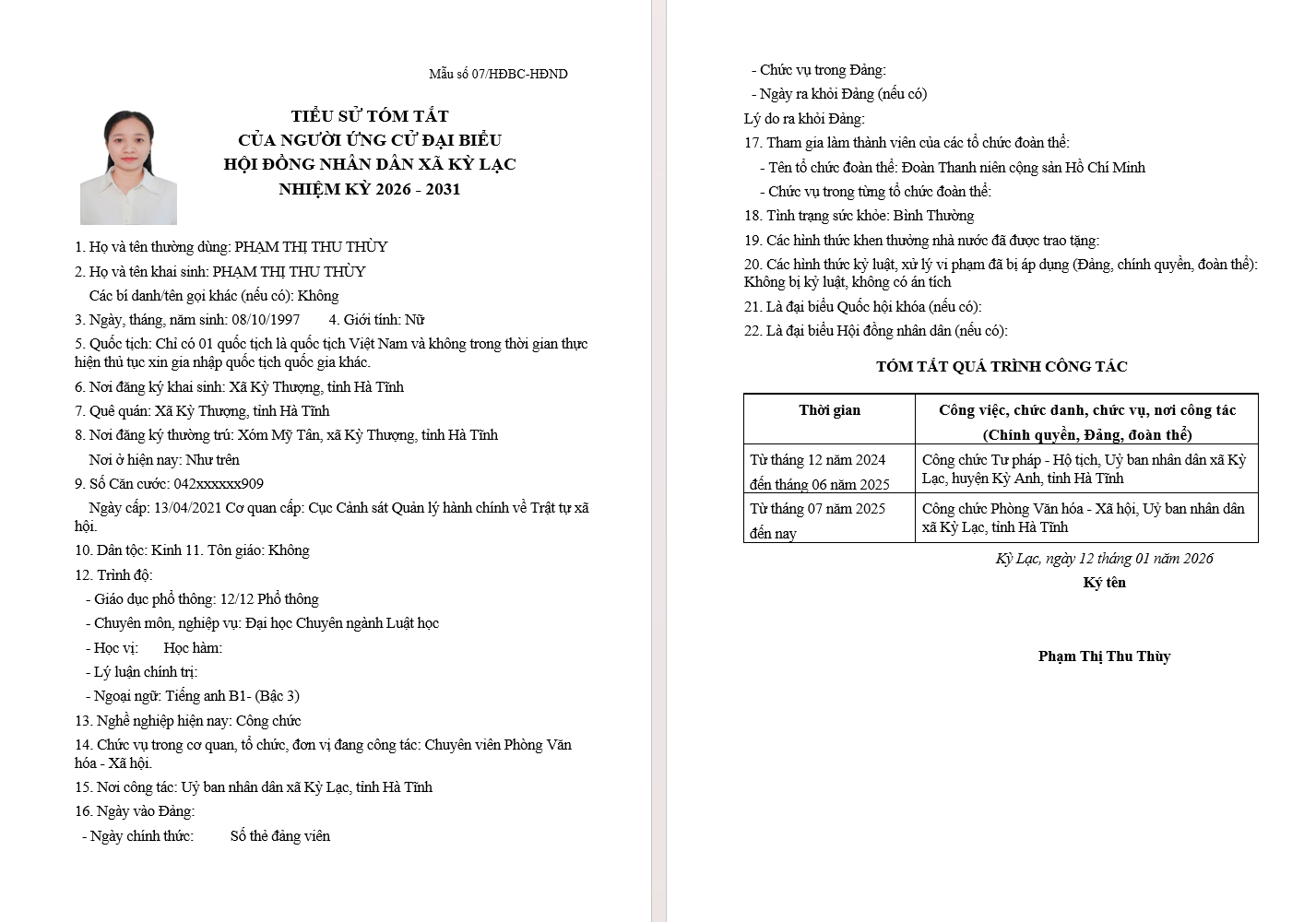 XÃ KỲ LẠC CÔNG DANH SÁCH ỨNG CỬ ĐẠI BIỂU HĐND XÃ KHÓA XXI, NHIỆM KỲ 2026 - 2031 TẠI ĐƠN VỊ BẦU CỬ SỐ 02 GỒM CÁC THÔN: TRUNG HÀ; HẢI HÀ; ĐÔNG HÀ; XUÂN HÀẨn danh27/02/2026A -A+Ẩn danh27/02/2026A -A+