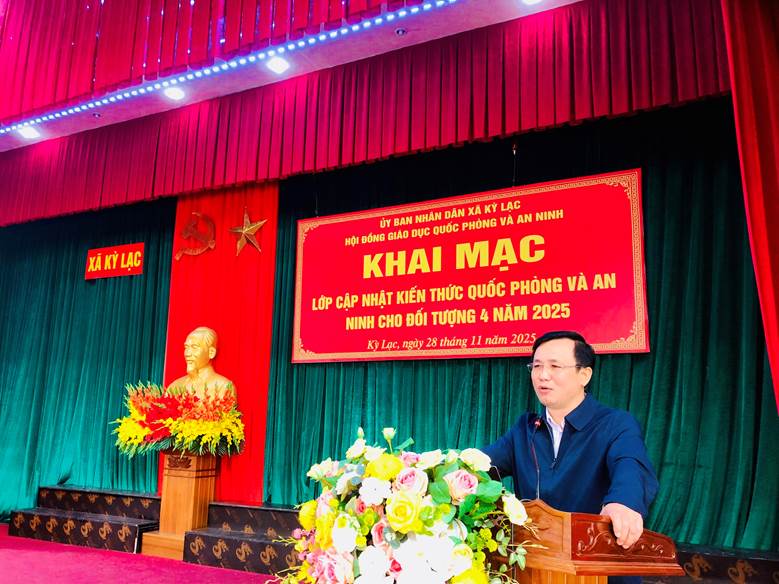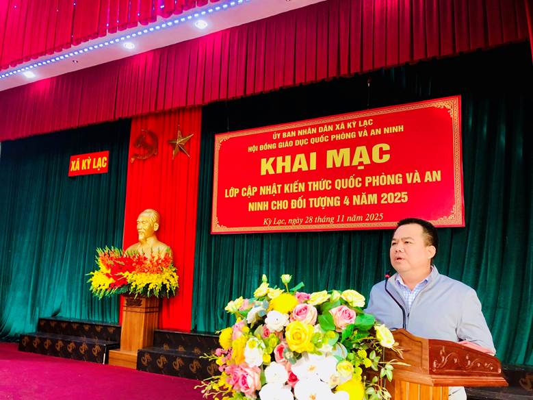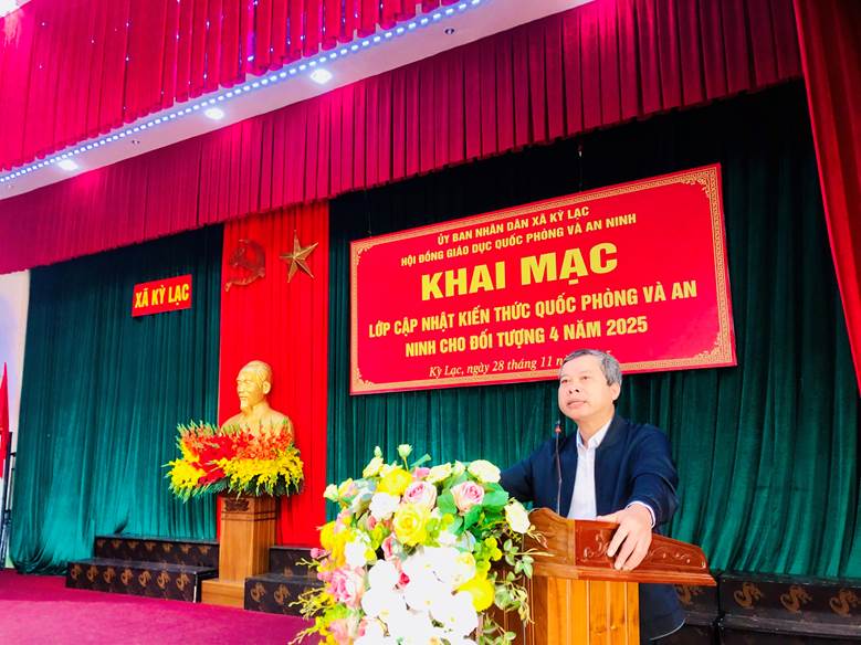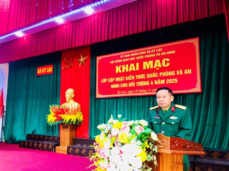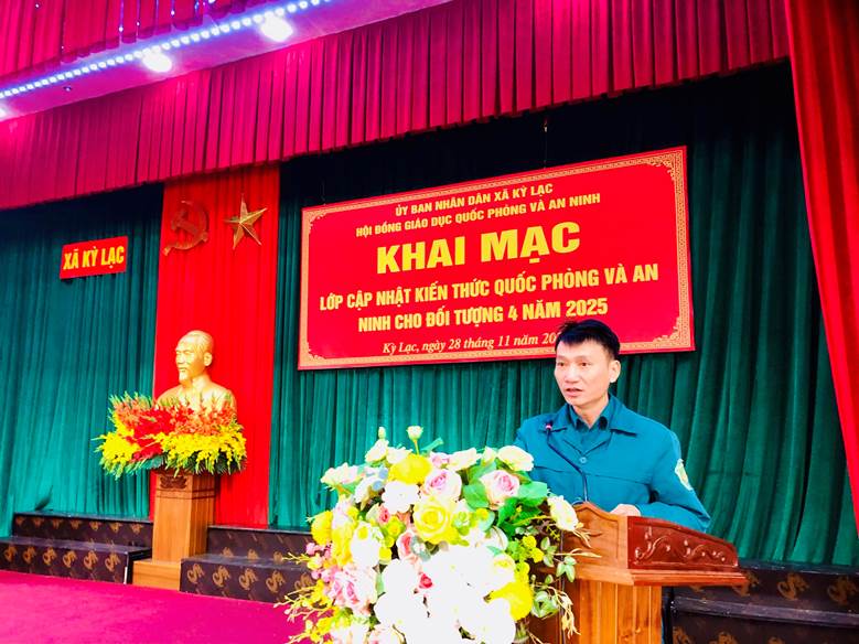 Sáng ngày 28/11/2025, UBND xã Kỳ Lạc tổ chức Khai mạc lớp cập nhật kiến thức quốc phòng và an ninh đối tượng 4 năm 2025 cho đội ngũ cán bộ, công chức, người hoạt động không chuyên trách và các chức danh thôn trên địa bàn không thuộc đối tượng 1, 2, 3.