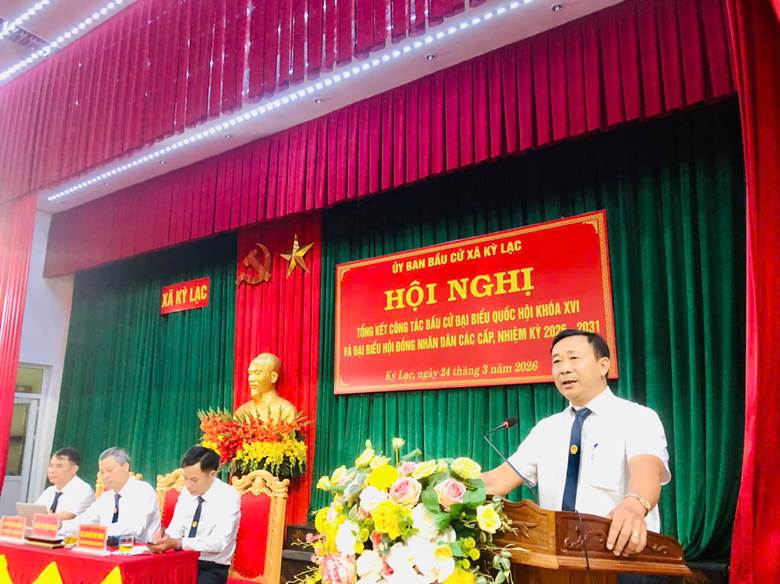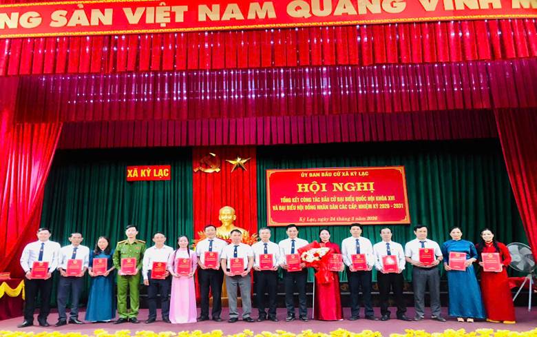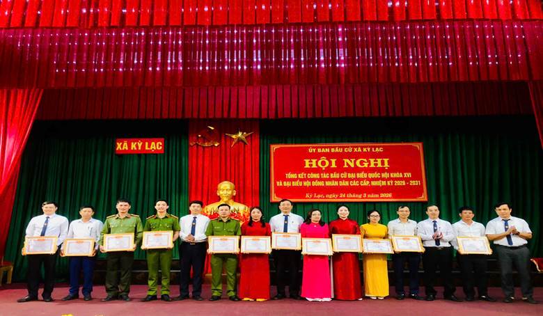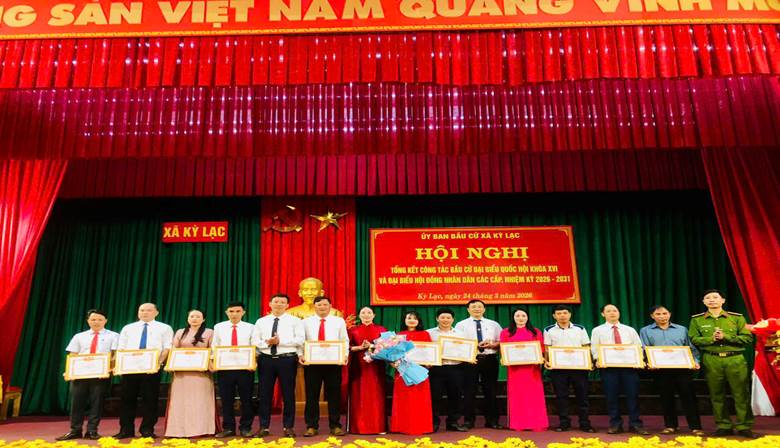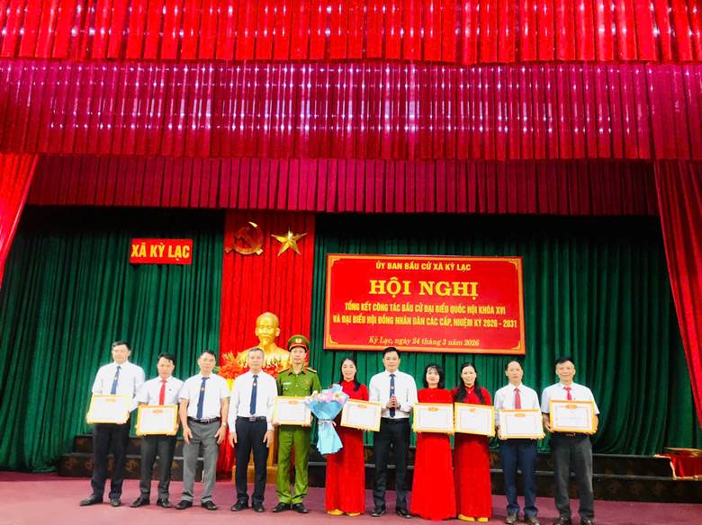 Nhân dịp này, Chủ tịch UBND xã Kỳ Lạc đã khen thưởng 8 tập thể, 26 cá nhân có thành tích xuất sắc trong công tác bầu cử đại biểu Quốc hội khóa XVI và đại biểu HĐND các cấp, nhiệm kỳ 2026–2031.